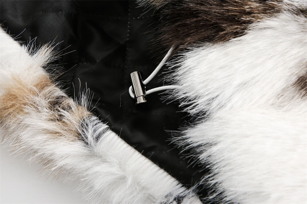 - Fabric: 100% polyester eco fur, designed to mimic the softness and plushness of real fur while being cruelty-free.