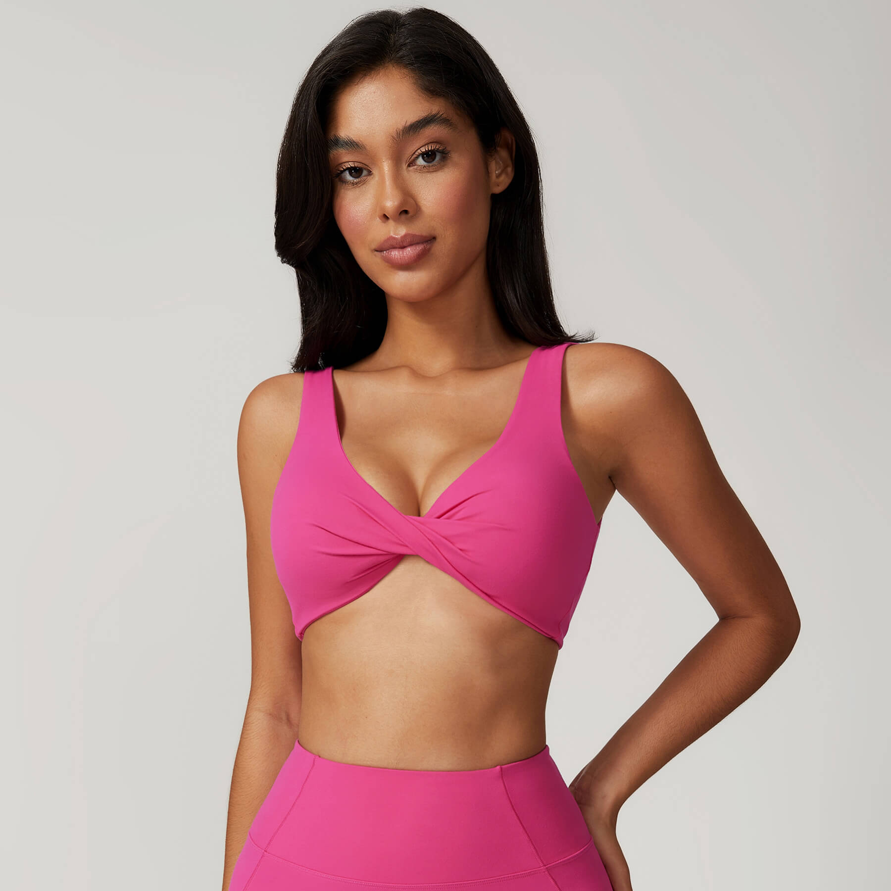 Amp up your style game with our Twist Front Sports Bra, blending laid-back chic with reliable support. Crafted for comfort and functionality, it's ideal for any activity.