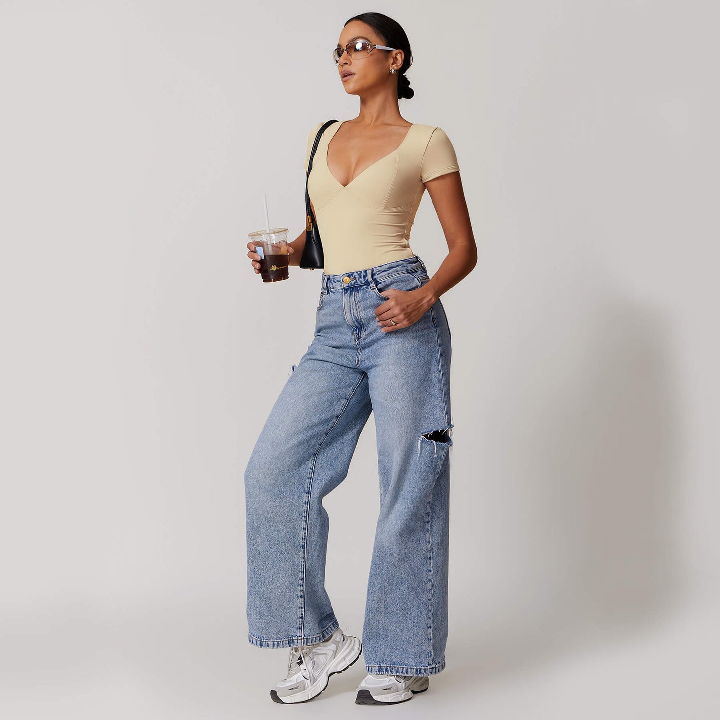 Made with smooth, breathable fabric, this bodysuit ensures both comfort and style. Its snap-button design makes it easy to slip in and out of. Pair it with jeans or skirts for a polished, everyday look.