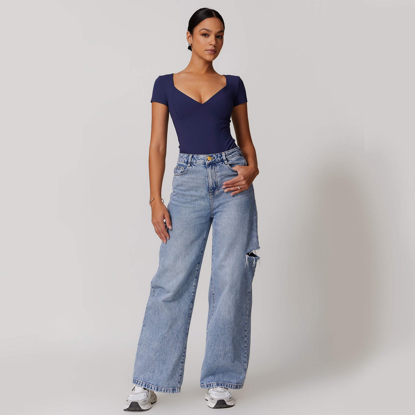 Made with smooth, breathable fabric, this bodysuit ensures both comfort and style. Its snap-button design makes it easy to slip in and out of. Pair it with jeans or skirts for a polished, everyday look.